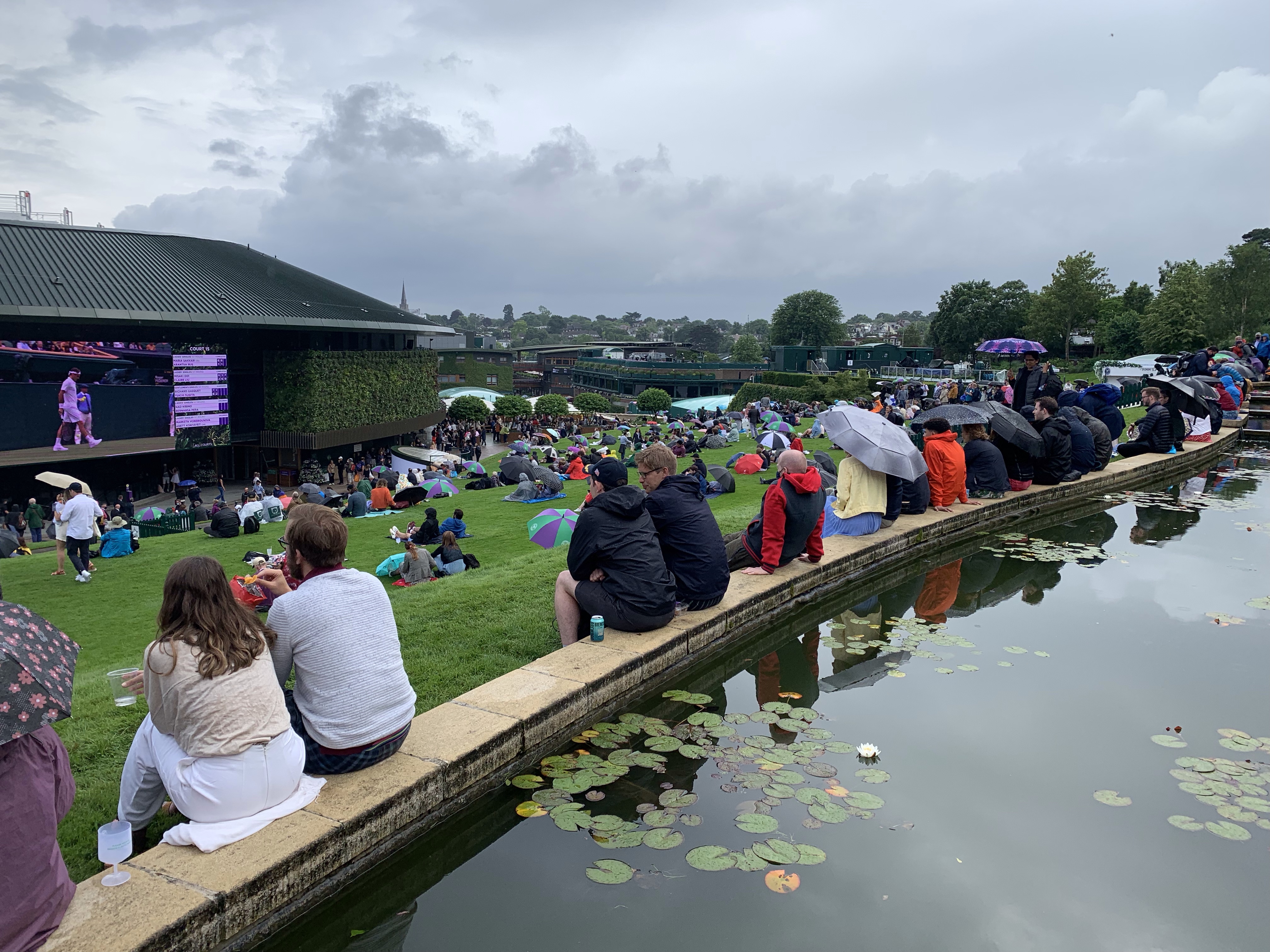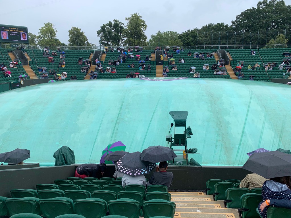 Sadly, it was while I was walking the rain started, and then didn’t stop for several hours. This was when it was noticeable that the grounds weren’t full to capacity – it much easier than normal to find somewhere under the courts to shelter out of the rain, and to be honest the queues for the food outlets weren’t as long as normal.