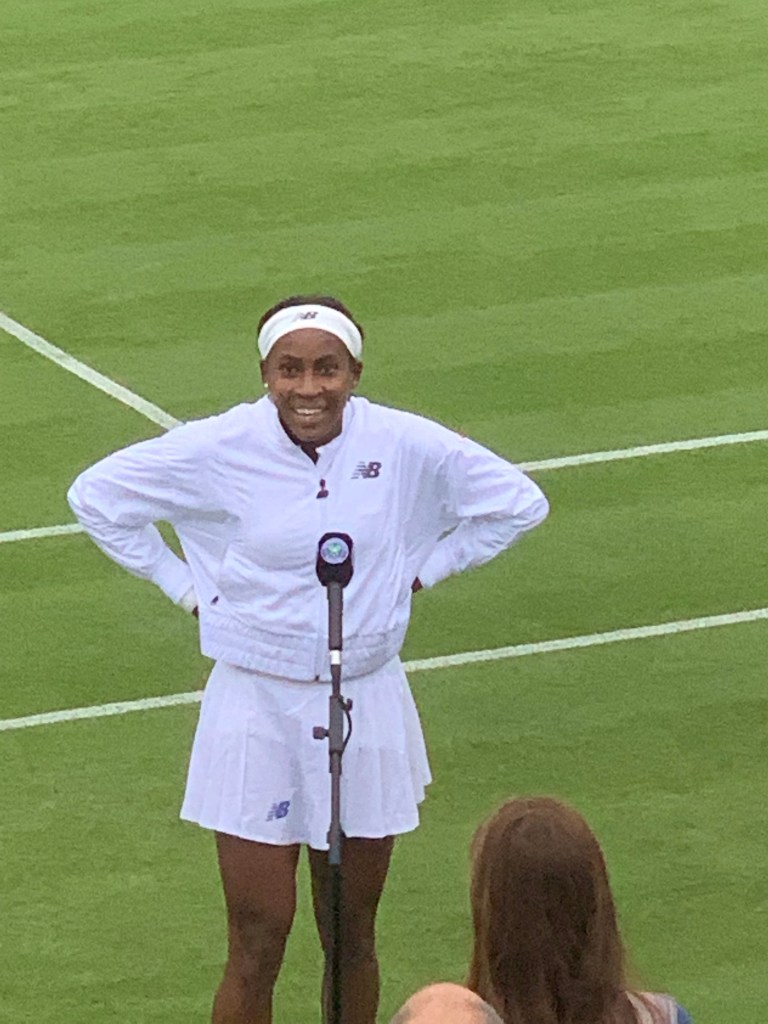 Eventually, the rain stopped and play resumed. My next match was Coco Gaugh. This was the first time I’d seen her, and I was pleased she was on court 2 – another few years she may only be on the big show courts. It was another good match, which she won.