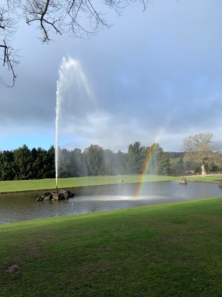 After I’d been round the house, I headed into the gardens for a chilly walk around. Fortunately it wasn’t raining, and the sun even tried to come out. I got lucky at one point and turned round to see a rainbow in the spray from the Emperor’s Fountain.