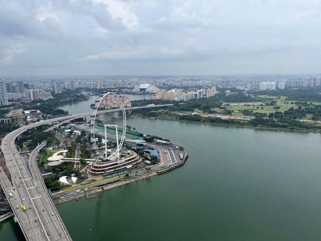 The observation deck offers unparalleled views of Singapore. In one direction you’ve got the city skyline, (assuming it’s not about to pour with rain and covered in clouds) and in the other direction you’ve got The Gardens by the Bay, with great views of the Supertrees, and the open water behind. Plus, you’ve got the area immediately under the hotel, the esplanade and if your eyes are good enough you can even see the Merlion, which is the national symbol of Singapore. You can also see the infinity pool, which is sadly only open to hotel guests – what views while you’re swimming and sunbathing. It was another very warm day, with the added fun of being breezy up there – I carelessly wore a dress – and it kept trying to rain. But, it was worth it.
