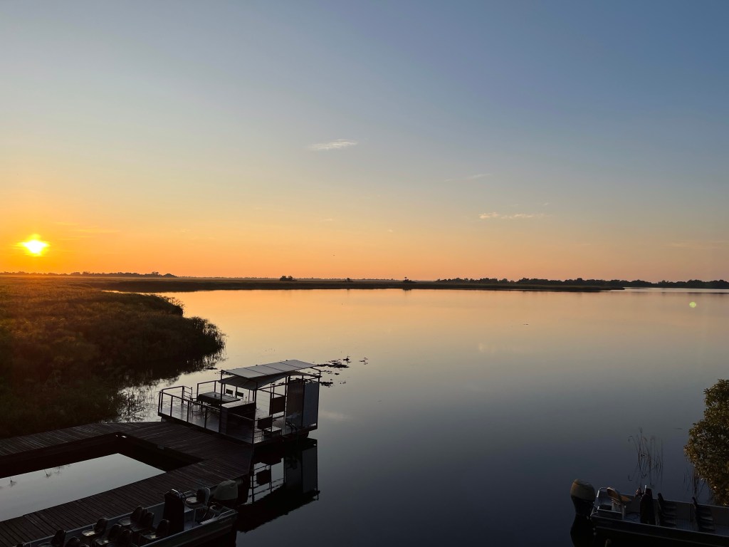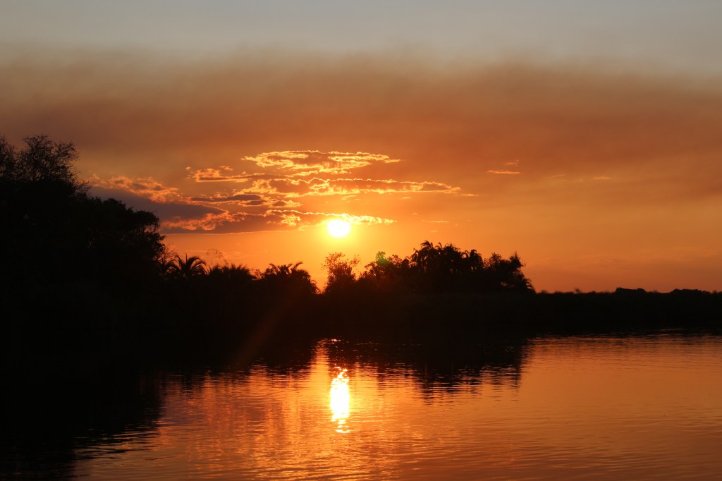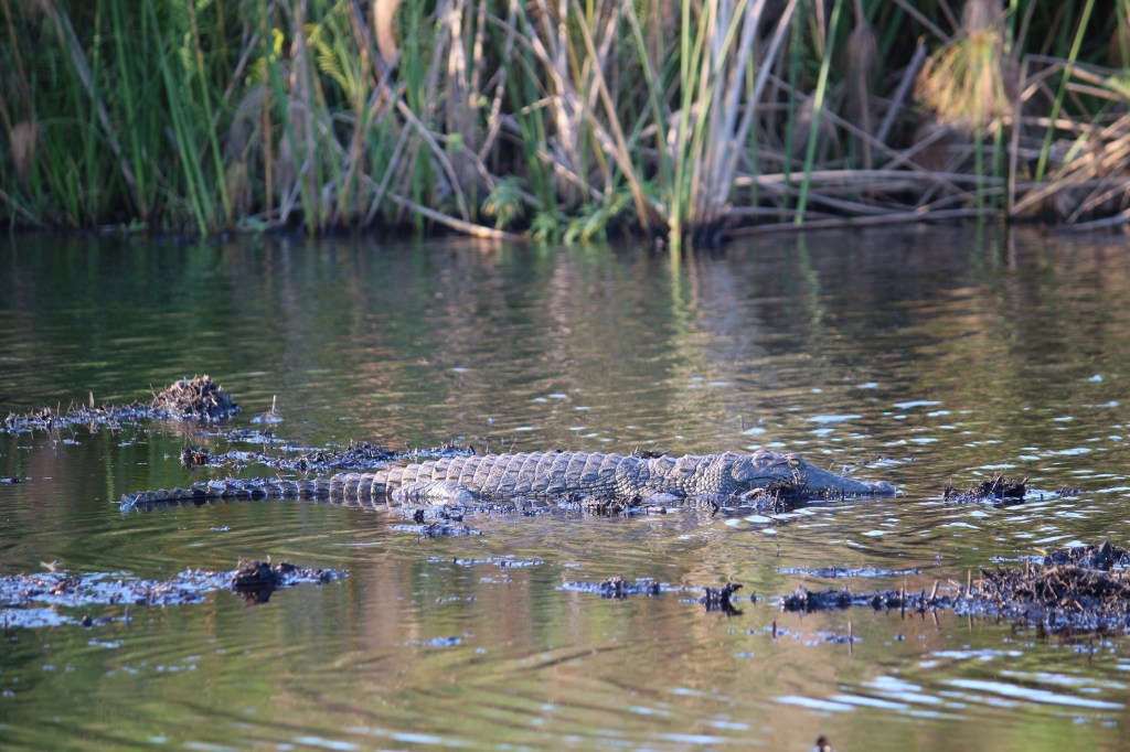 In the afternoon we had a few quiet hours due to the heat, and we sat in the shade, chatting and playing poker. By about 4pm it was cooling down slightly, so we went out on a boat for a couple of hours to see the sunset and see the wildlife, mostly birds. It was a lovely couple of hours. It was so nice to be out on the water again, and as ever the scenery was incredible. We mostly saw birds, although we did get a good look at the resident crocodile, and off in the distance there were more hippos, but mostly we saw birds – bee catchers, cormorants, an eagle and far more than I can name now.